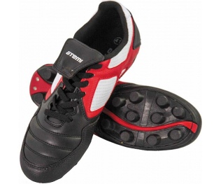 Футбольные бутсы для игры на полях с искусственным покрытием. Верх - искусственная кожа. Дополнительная прошивка носочной части придает дополнительную надежность конструкции ботинка. Анатомическая форма колодки обеспечивает правильное положение стопы игрока. Шнуровка скрыта удлинённым язычком для лучшего контроля мяча. Подошва: износостойкая резина обеспечивает хорошие отталкивание и сцепление. Стелька из вспененного ЭВА даёт дополнительный комфорт. Размер: 44, цвет: черный/белый/красный