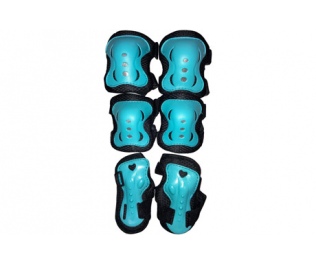 Фиксация липучками, внутренний чулок, прочная чашка из PVC, анатомически правильная форма. Максимальный комфорт и надежность Состав комплекта: защита кистей, коленей, локтей. Предназначение: защита тела. Материал: полиэстер, пластик. Бренд: FORA (Литва) Гарантия: 30 дней Изготовлено в: Китай Материал: Пластик/полиэстер Цвет: Черный/мятный
