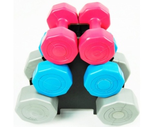 Набор гантелей ATLAS SPORT FITNES COMPOSIT 12кг с подставкой (2шт*1кг+2шт*2кг+2шт*3кг). В комплекте 6 гантелей и подставка. Пластиковый корпус диска защитит Ваш пол от царапин и повреждений. Именно такой тип гантелей является наиболее популярным среди спортсменов. Удобная пластиковая ручка не позволит ладоням потеть. Корпус гантелей не имеет запаха, в отличие от обрезиненных гантелей.