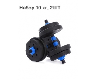 Удобные гантели 10 кг (2 штуки по 5 кг). В комплекте 2 грифа с пластиковыми шайбами. Пластиковый корпус диска защитит Ваш пол от царапин и повреждений. Именно такой тип гантелей является наиболее популярным среди спортсменов. Удобная пластиковая ручка не позволит ладоням потеть. Корпус гантелей не имеет запаха, в отличие от обрезиненных гантелей. Универсальный набор гантелей для начинающих и опытных атлетов. Гантели выполнены из специального ударопрочного пластика с засыпным утяжелителем.****Материал: Пластик (АВС), цемент Вес: 10 кг (2х5кг) Комплектация: 4х1,25 кг; 4х1,0 кг, гриф пластик 2 штуки Конструкция: Разборная - 2х5кг Диаметр: 26 мм